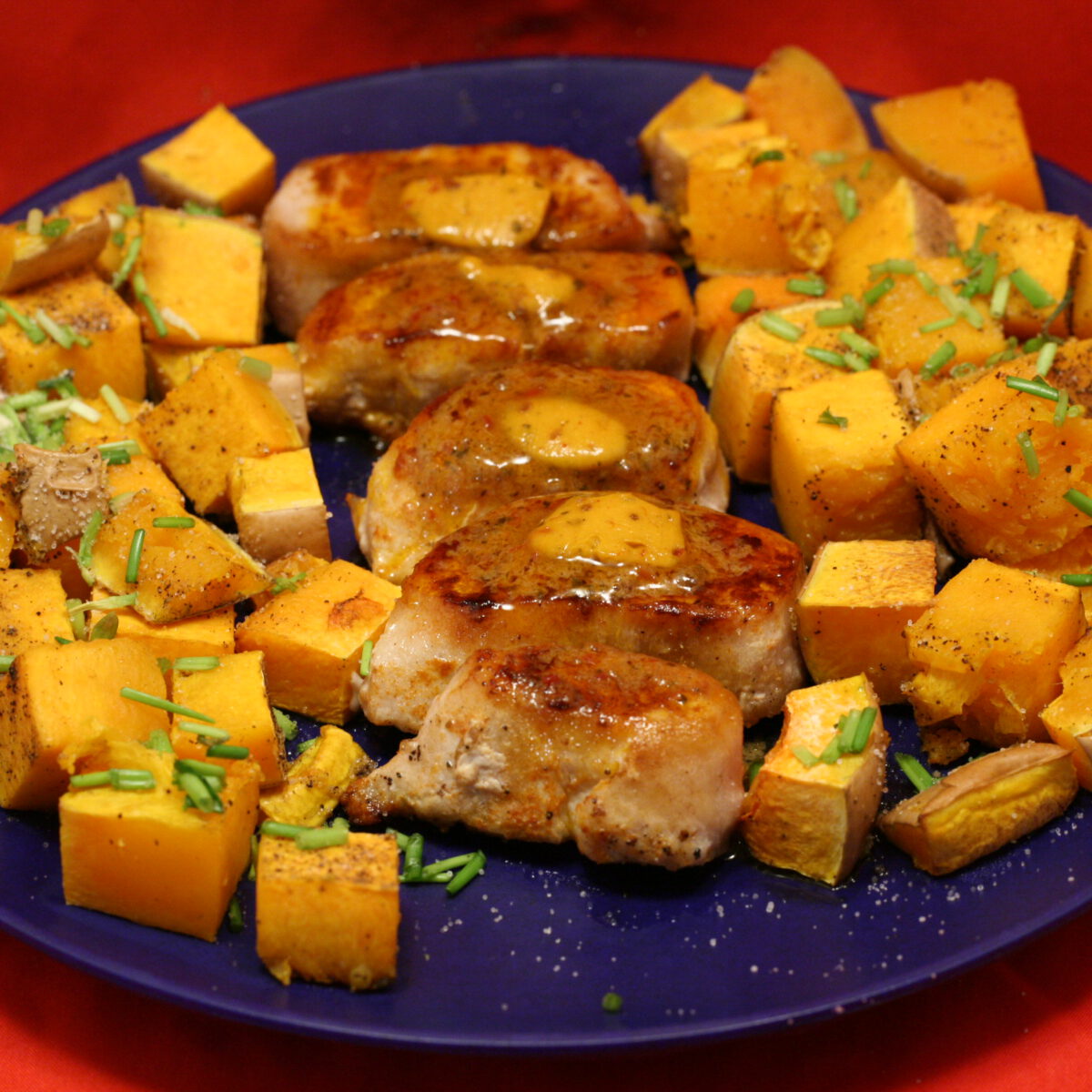 Gegrillte Puten Ministeaks Mit Gebackenem Butternut Kurbis Nudelheissundhos